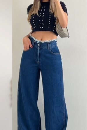 Τζιν “Raw Edge” Wide Leg με Ξέφτια