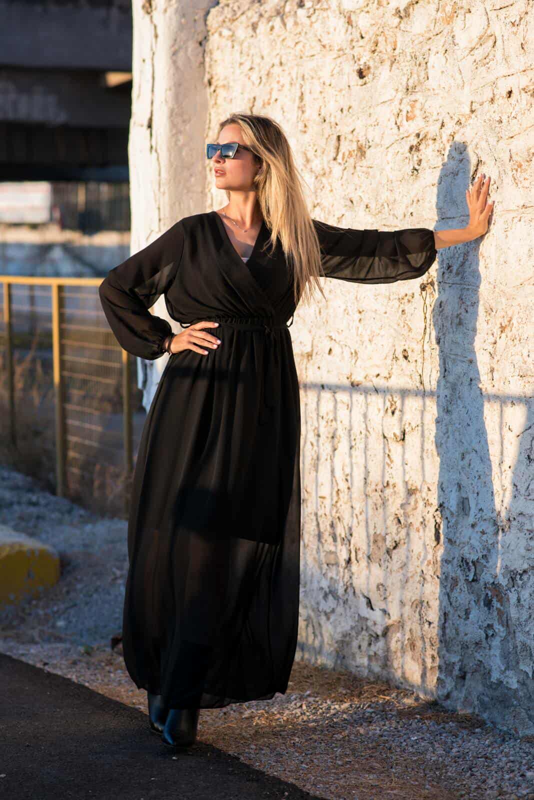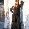 Το “Midnight Muse” είναι το απόλυτο μαύρο φόρεμα για κάθε γυναίκα που θέλει να ξεχωρίζει με κομψότητα και μυστήριο. Το αέρινο ύφασμά του χαρίζει κίνηση, ενώ οι διάφανες λεπτομέρειες δημιουργούν μια γοητευτική, θηλυκή σιλουέτα.