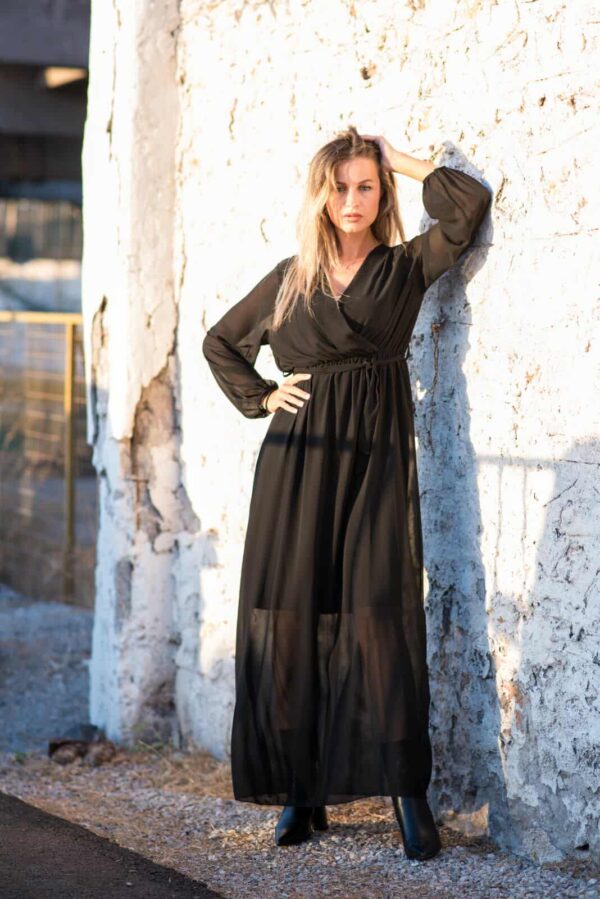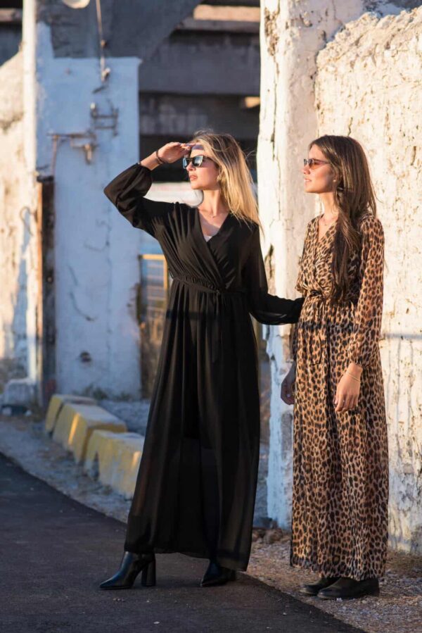 Το “Midnight Muse” είναι το απόλυτο μαύρο φόρεμα για κάθε γυναίκα που θέλει να ξεχωρίζει με κομψότητα και μυστήριο. Το αέρινο ύφασμά του χαρίζει κίνηση, ενώ οι διάφανες λεπτομέρειες δημιουργούν μια γοητευτική, θηλυκή σιλουέτα.