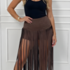 Φούστα “Wild Fringe” Καφέ με Κρόσσια