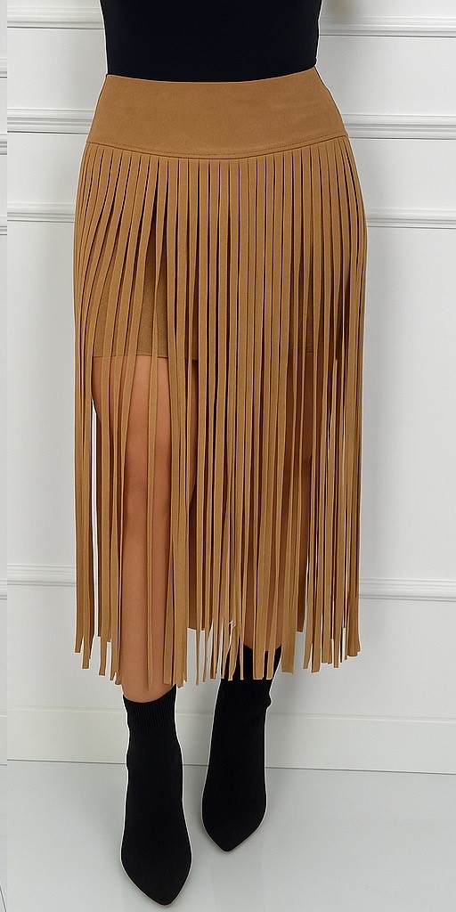 Φούστα “Wild Fringe” Καμηλό με Κρόσσια